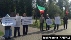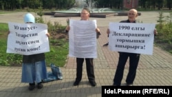 В Казани прошел пикет, посвященный 26-летию принятия декларации о государственном суверенитете Татарстана.