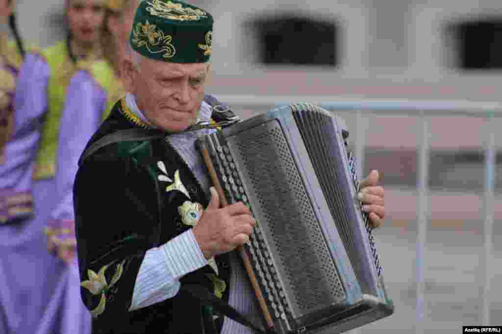 30 августа на площади перед театром Г.Камала прошел традиционный праздник "Играй, гармонь!". Шел дождь - зрителям, пришедшим к 10 утра, пришлось дожидаться начала музыкального праздника целый час. В прошлом году народу было ощутимо больше. В этот раз у театра Г.Камала не было ни одной вывески, ни одного баннера с поздравлениями с Днем Республики.