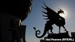 Речь, судя по всему, идет о творениях скульптора Даши Намдакова. Две скульптуры, изображающие семью зилантов, и две – крылатых барсов, были установлены у чаши еще минувшим летом. Мифические звери вызвали неоднозначную реакцию у татарстанцев. На сайте change.org даже появилась петиция с требованием демонтировать фигуры "дьявольских существ", которые, как пишет её автор, Резеда Сафина, "принесли много зла жителям города".