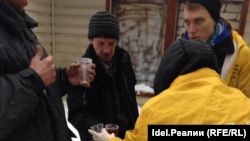 Юрий не в первый раз приходит в "мобильный пункт питания". Говорит, что горячий суп и чай для него – серьезное подспорье: "В добавке никогда не отказывают. Покушаю горяченького и согреваюсь. У нас, когда ребята из "Человек-человеку" приезжают, к их машине выстраивается "живая очередь". Никто с миской вперёд не забегает. Все соблюдают порядок. Мы такие же люди, и подисциплинированнее многих".