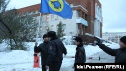 В итоге шествие состоялось. Однако представитель движения "Күк бүре” Азат Сальманов, шедший во главе процессии, в какой-то момент развернул один флаг. Сотрудники полиции тут же вынесли ему предупреждение: либо он флаг убирает, либо остаётся стоять один вместе с флагом. Сальманов выбрал второе.