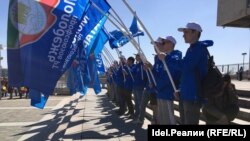 В акции принимают участие члены "Единой России", молодежного крыла партии, студенты и бюджетники.