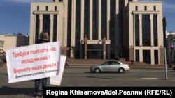 Вкладчики "ТФБ Финанс" в эти минуты проводят одиночный пикет напротив здания правительства Татарстана. Об этом с места событий сообщает корреспондент "Idel.Реалии".
