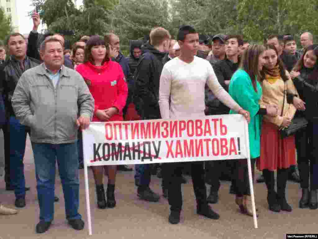 Власти Башкортостана не согласовали митинг за отставку главы республики Рустэма Хамитова, который прошел в Уфе 21 сентября. Полиция предупредила, что организаторы и активные участники могут быть привлечены к ответственности. Полиция в начале акции еще раз напомнила о несогласованности митинга, потребовала убрать плакаты и мегафоны. Митингующие не подчинились. На митинг пришло более 500 человек, сообщает корреспондент "Idel.Реалии" с места события. В конце митинга полиция оформила протокол на организатора — журналиста Рамиля Рахматова. В выходные митинг в защиту башкирского языка в Уфе собрал несколько тысяч человек.