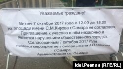 В пятницу вечером на сайте мэрии Самары появилось официальное сообщение, что митинг протеста 7 октября на площади имени Кирова не согласован с властями. Городские чиновники предупредили горожан об ответственности за участие в несанкционированной акции оппозиции.