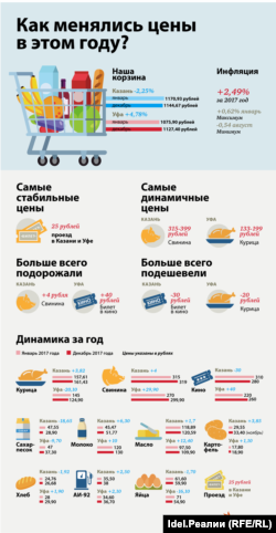 Весь год "Idel.Реалии" мониторили цены на продукты в Казани и Уфе. Итог неутешительный: цены то падают, то взлетают, а средний чек стабильно растет. Кроме того, случалось, что некоторые товары и вовсе исчезали с прилавков.