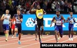 Ямайский бегун Усэйн Болт, обладатель восьми мировых рекордов на спринтерских дистанциях, получает травму во время эстафеты на чемпионате мира по легкой атлетике в Лондоне. 12 августа.