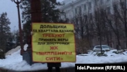 Ранее первый премьер-министр РТ Рустам Нигматуллин, курирующий решение вопросов долгостроев, сообщил, что дом ЖК "Миллениум сити" не будет достроен в 2018 году, как обещалось ранее. В качестве протеста дольщики возобновили одиночные пикеты у здания Кабмина РТ.