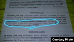 "Руководство требует отчёта о том, что он проголосовал, в виде звонка на телефон с указанием порядкового номера из журнала, где избиратели ставят подпись за получение бюллетеня для голосования, а также количество родственников, с кем проживаешь в квартире, и участвовали или нет они на выборах. Имеется фотография с инструкцией, что и как делать, кому звонить и на какой номер телефона," — сказано в сообщении.