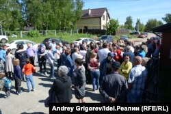 ...В день, когда мы приезжаем в Вознесенское, здесь снова сход. Народ от мала до велика собирается за церковью Тихвинской иконы Божьей матери.