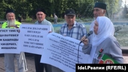 На акции было много плакатов на татарском языке. Участники митинга потребовали вернуть действие Декларации 1990 года и Конституции Татарстана 1992 года.