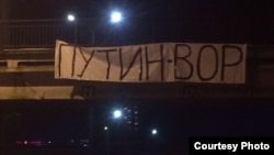 В Набережных Челнах активисты вывесили баннер "Путин — вор"