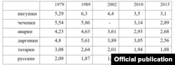 Теперь что касается уменьшения численности этносов, о которых говорит Валерий Тишков. Здесь одновременно играют два фактора: ассимиляция нерусских народов и невысокая рождаемость, которая только усугубляет первую тенденцию. Если обратимся к результатам статистических данных (за 2015 год), то наибольшее количество детей, рожденных на одну женщину, зафиксировано у ингушек (3,13 ребенка), цыганок (3 ребенка) и чеченок (2,8 ребенка). А самые низкие показатели — у евреек (1,5). У татарок — 1,88 ребенка. Но прежде чем делать далеко идущие выводы, нужно учесть два момента: 1) На уровень рождаемости влияют не только национальные традиции, но и уровень урбанизации. Чем более урбанизированный народ, тем хуже у него демографические показатели и, соответственно, наоборот. И по мере усиления урбанизации даже у народов, традиционно показывавших высокий процент рождаемости, эти показатели падали. 2) Современные тенденции таковы, что даже самый высокий уровень рождаемости со временем у всех народов неизбежно снижается.