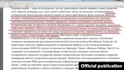 Те же слова — но с небольшими косметическими правками — пришли в голову авторам проекта "Молодежный фестиваль военно-исторической реконструкции "Великая Победа. Май 45-го" из автономной некоммерческой организации "Доброделание" (город Болгар, Спасский район Республики Татарстан), которые запросили более двух с половиной миллионов рублей и тоже выиграли конкурс (орфография сохранена):