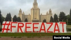 Под окнами МГУ выложили надпись в поддержку аспиранта Азата Мифтахова