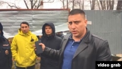 Досталось и тем, кто находился не внутри огороженной территории. На одном из видео человек в фуражке, похожий на Толстых, выскакивает на улицу и пытается ударом руки выбить камеру из рук человека, снимающего происходящее (съемка на этом месте прерывается).