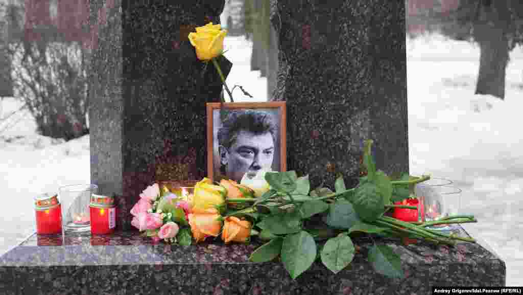Людей было немного. Вместе с журналистами "Idel.Реалии", "Радио Азатлык" и "Активатики" социолог Искандер Ясавеев насчитал 15 человек. Плюс один полицейский в форме, наблюдавший процесс со стороны. Церемония была короткой, пришедшие возложили цветы на подножие мемориала, где уже стояли свечи и портрет политика.