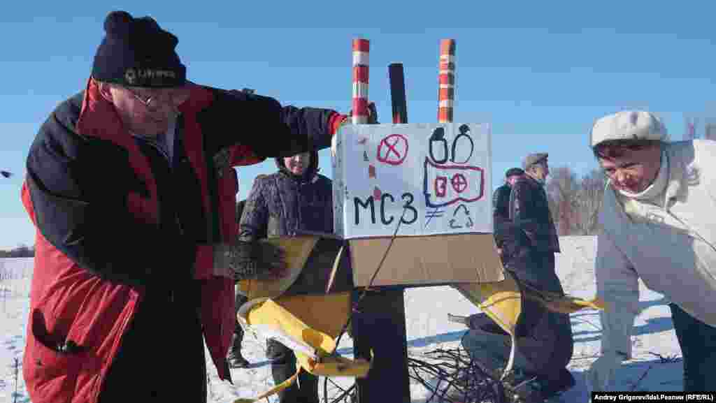 Татарстанские экоактивисты отметили Масленицу в посёлке Займище под Казанью. Кульминацией праздника стало сжигание "чучел". В этот раз кто-то прикрепил к каркасу портрет человека, похожего на министра экологии РТ Александра Шадрикова. Кроме того, был изготовлен картонный макет мусоросжигательного завода, который тоже был сожжен на костре.