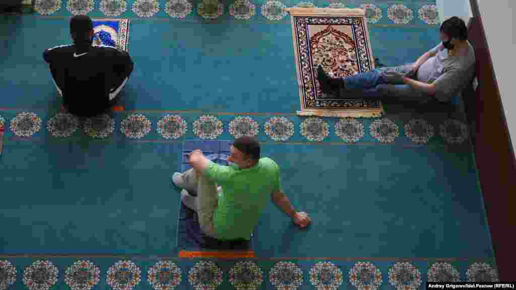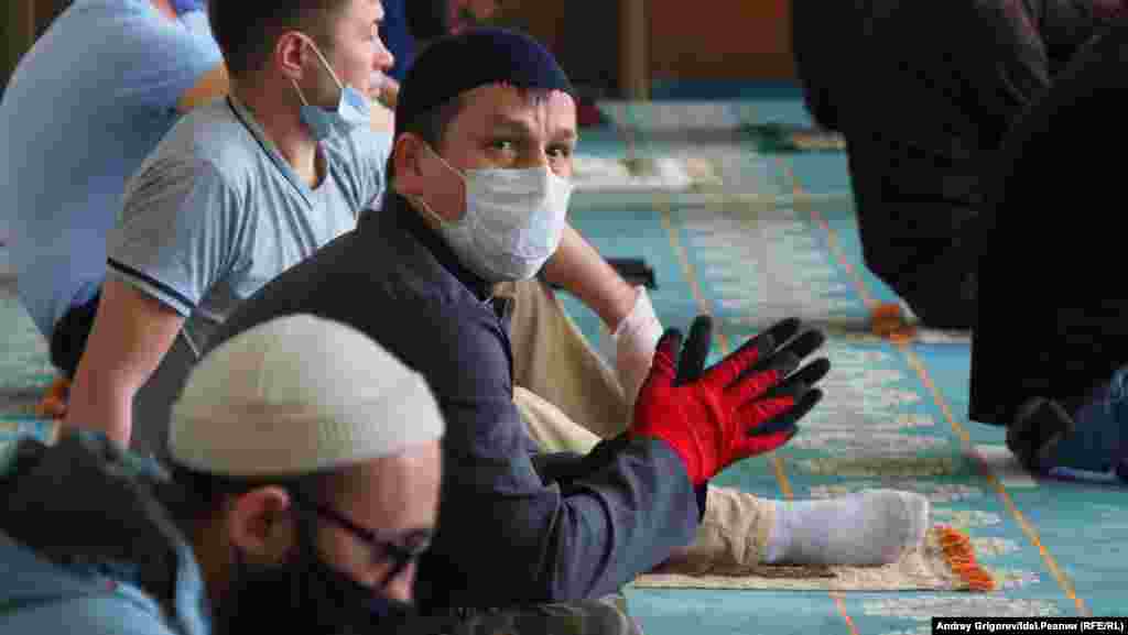 Теперь их посещение разрешено — но только в масках и перчатках, кроме того, необходимо соблюдать социальную дистанцию. Корреспондент "Idel.Реалии" побывал на первом пятничном намазе в казанской мечети "Гаилә". Эта мечеть расположена в микрорайоне "Азино", где плотность населения очень высокая, потому обычно пятничные намазы здесь собирали одновременно порядка 700 прихожан (как внутри здания, так и во дворе) — однако в эту пятницу, 5 июня, мечеть смогла принять лишь около 200 человек. Во дворе и внутри мечети нанесли специальную разметку — полоски, рядом с которыми надлежало класть молельные коврики.