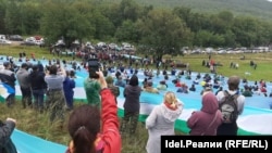 Экоактивисты, правозащитники из Совета по правам человека при главе Башкортостана, активисты организации "Башкорт", которая была недавно признана "экстремистской", а также жители городов Сибай, Учалы, Нефтекамск, западных районов Башкортостана сегодня, 9 августа, участвовали во флешмобе "Живая цепь" у горы-шихана Куштау в Ишимбайском районе республики. Среди них были также известные ученые, артисты, кинорежиссеры, много уфимской интеллигенции, сообщает корреспондент "Idel.Реалии" с места события.