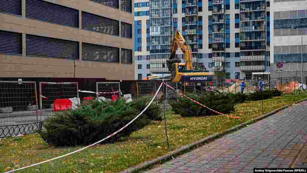 Как эту магистраль втиснут между узенькой полоской, оставшейся от двора, и соседними зданиями, чиновников, очевидно, не волнует. Жители же боятся, что ради этого город изымет у них еще часть территории, на которой сейчас растут газон и молодые деревья. К слову, к дому подбирается строительная техника. Очередному ЖК, который возводят по соседству, понадобился водопровод. Известие о новых строительных работах прямо за окнами и вынудило жильцов выйти на улицу.