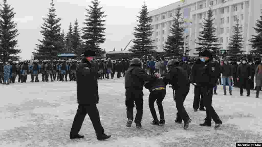 В Уфе волокли по земле женщин. Протест 31 января в фотографиях