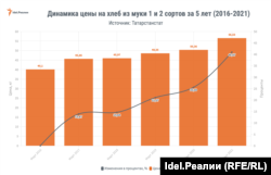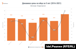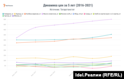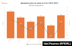 "Сахар подорожал почти вдвое, яица и подсолнечное масло — на треть. За год цены на основные продукты питания выросли на 46%. И это только официальная статистика Татарстанстата. Курица за год подорожала на 16,9%, яица — на 34,2%, яблоки — на 16,1%, подсолнечное масло на 30%, а сахар — на 79,5%".