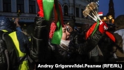 Уже в 19:30 и выход, и проход к точке сбора митингующих был заблокирован. Начались первые задержания. В автозаках оказались около десятка человек. Правоохранители решили обратить внимание и на корреспондента "Idel.Реалии" — взяли под руки и повели проверять документы. После того, как полицейские убедились в подлинности пресс-карт и редакционного задания, журналисту позволили продолжить работу. Этот эпизод было можно посмотреть в нашем Instagram.
