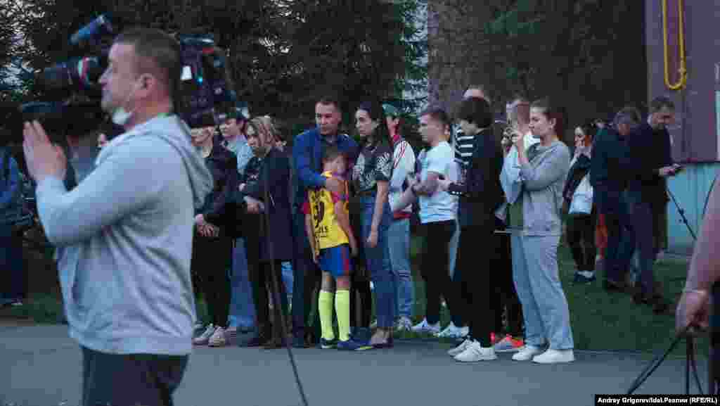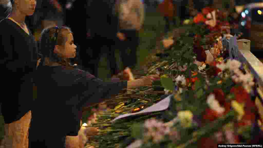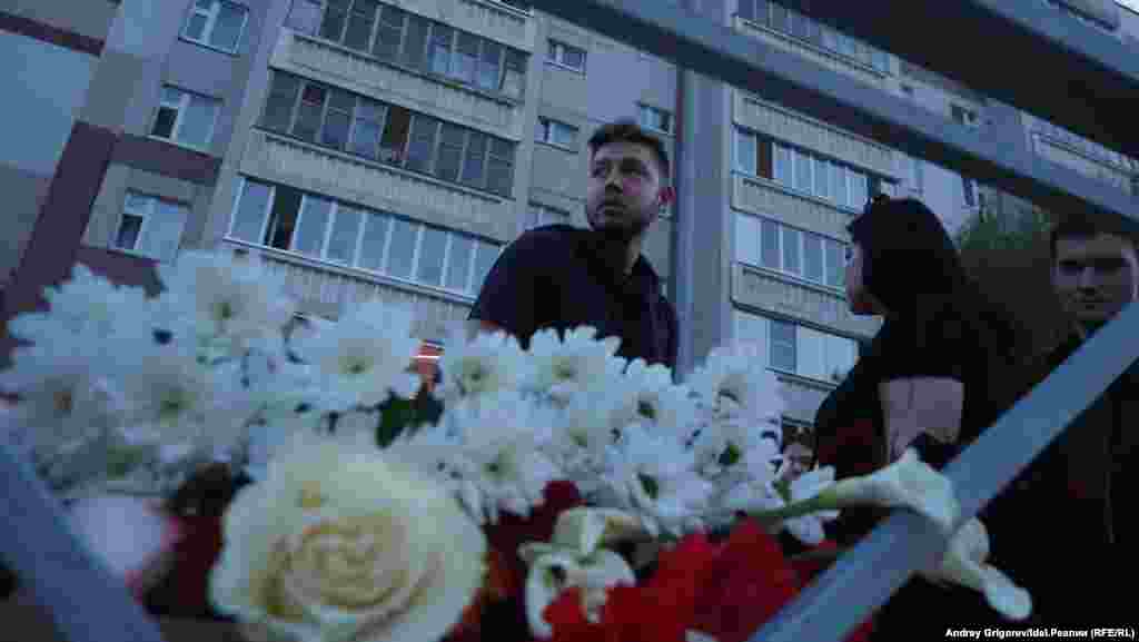 Казанцы до поздней ночи несли цветы, мягкие игрушки и свечи к школе, которая 11 мая подверглась атаке вооруженного ружьём 19-летнего парня. Уже в восемь вечера импровизированный мемориал утопал в цветах и плюшевых мишках. Он был организован на газоне наискосок от школы. К самому учебному заведению многочисленных казанцев не подпускала полиция.