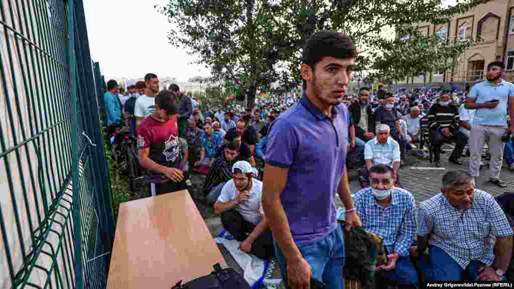 Около тысячи человек собралось на праздничный намаз по случаю Курбан-байрама во дворе казанской мечети "Гаилә" в казанском микрорайоне Азино. Из-за жестких ограничений, продиктованных пандемией коронавируса COVID-19, само здание могло вместить лишь несколько сотен человек — по этой причине имам Рустем Хайруллин решил, что все без исключения пришедшие будут молиться во дворе мечети, чтобы между верующими не было искусственного разделения. Прочтя проповедь с крыльца, а потом спустился к остальным участникам молитвы.