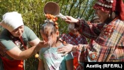 "Вот польешь в этот день девчонок яблочной водой — их лица становятся светлее, милее. Но большинство кряшен даже не знают о существовании этого обряда. Если бы в советское время не запрещали, эта традиция жила бы до сих пор," сетует целительница и продолжает. — В те годы обряд проводили тайно — бабки делали это в бане или выводили девчонок куда-нибудь в укромное место в лесу. Поливали и приговаривали: "Омываю яблочной водой, пусть придет все хорошее. Щечки будут румяные как яблочки, речь сладкой как мед, руки-ноги целы, тело — здоровым".