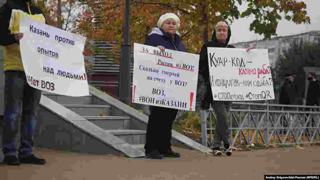 Противники ВОЗ провели в воскресенье, 10 октября, массовый пикет против учений Всемирной организации здравоохранения в Казани. Двухчасовая акция протеста состоялась в сквере славы у станции метро "Проспект Победы". Участники держали в руках плакаты с красноречивыми лозунгами — "Без ВОЗ мы здоровыми были всегда", "За выход России из ВОЗ", "ВОЗ, руки прочь от Казани!"