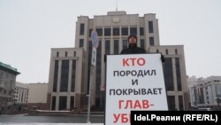 Алексей Соловьёв вышел на одиночный пикет около полудня, 31 января, в руках он держал двусторонний плакат. "Батин = Гафуров" и "Кто породил и покрывает глав-убийц?" гласили надписи на нём. Как уже рассказывали "Idel.Реалии", после ареста ректора КФУ Ильшата Гафурова зеленодолец усмотрел в его деле множество параллелей со своим.