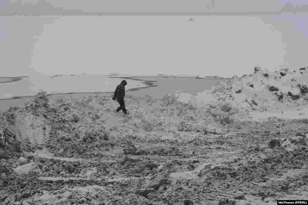 Ширина искусственного берега и его протяженность впечатляют уже сейчас: человек у кромки воды кажется муравьём.