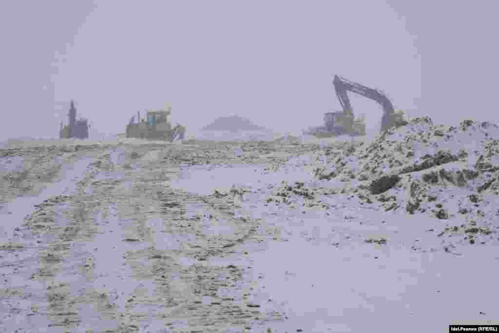 Здесь идут масштабные строительные работы. Тяжелая техника формирует искусственные участки суши, а контролирующие органы до сих пор видят в этом лишь "складирование грунта".