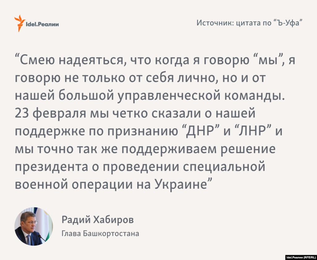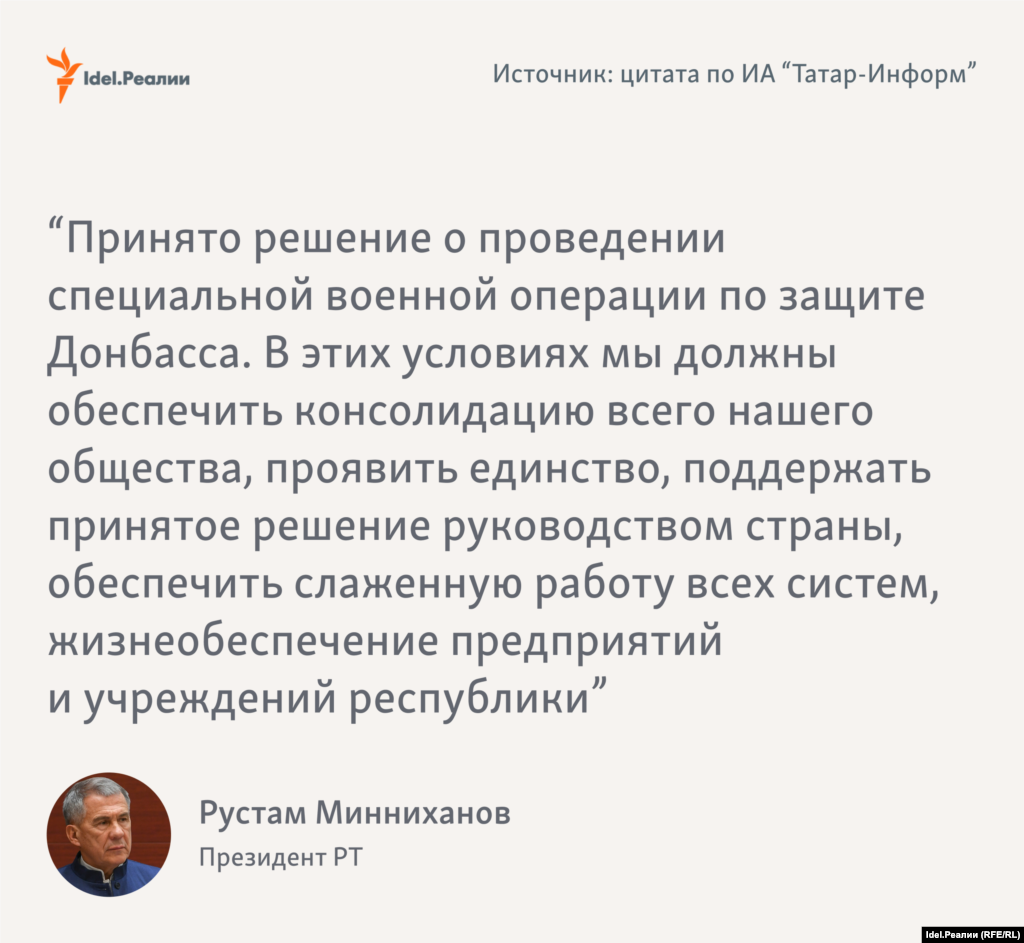 Президент Татарстана, глава Башкортостана, губернатор Нижегородской области... Это далеко не полный список официальных лиц в республиках и областях Поволжья, которые публично поддержали вторжение российских войск в Украину. Приводим их цитаты.