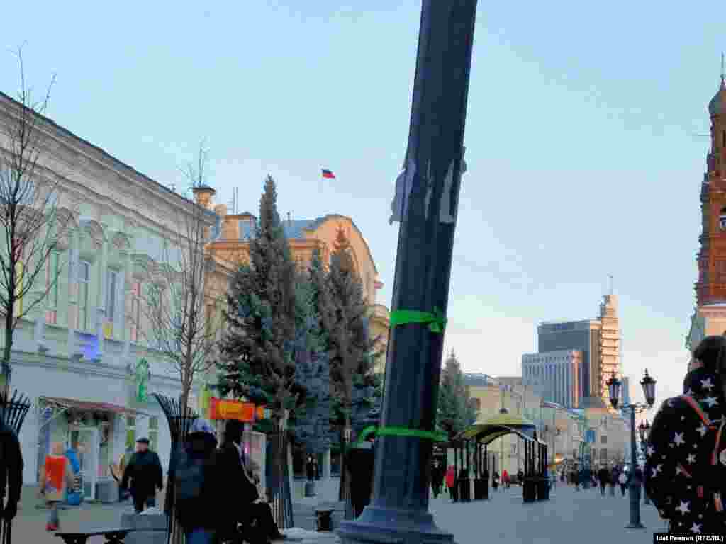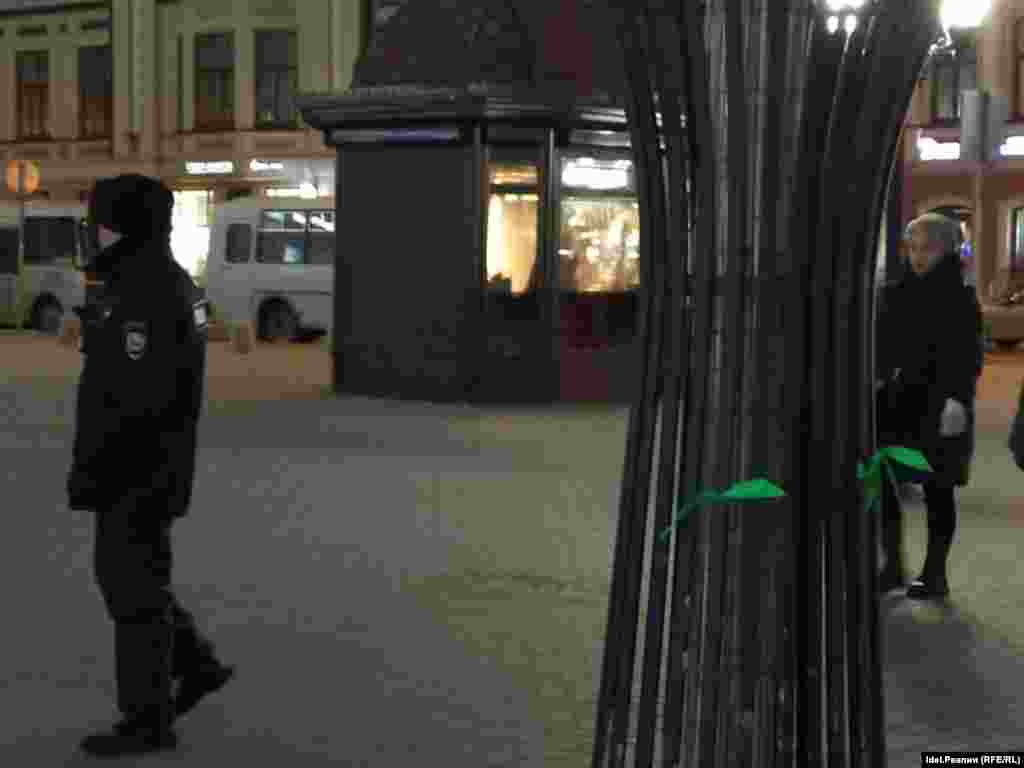 В российских городах запустили флешмоб "Зеленая лента". Активисты привязывают зеленые ленточки на деревья, столбы и другие элементы окружения. Это делается в знак протеста против войны с Украиной.