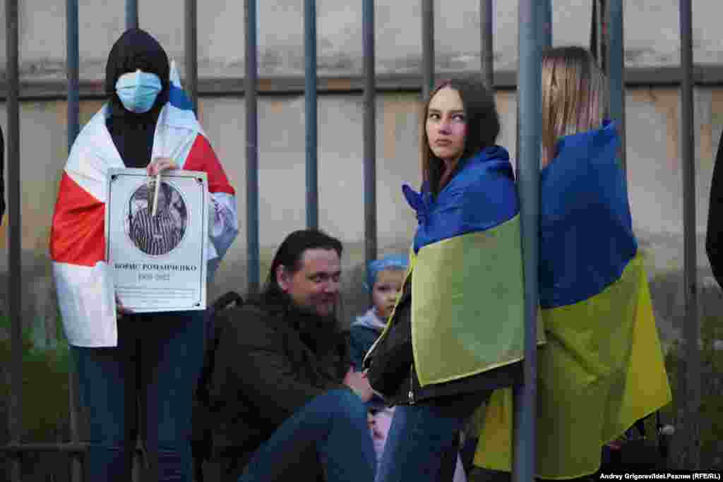 Антивоенная акция у посольства РФ в Варшаве