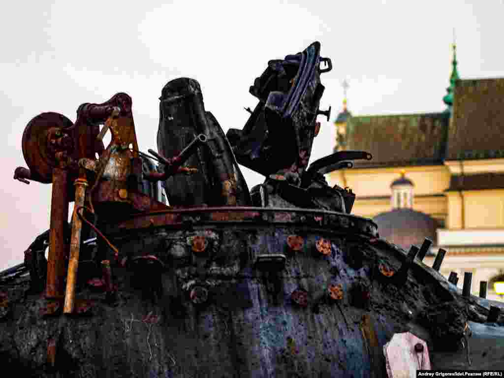 "За вашу и нашу победу!" — так называется выставка, которая открылась прямо под открытым небом на Замковой площади Варшавы в конце июня. На выставке представлена трофейная техника, подбитая украинскими военными весной 2022 года: танк Т-72БА и самоходно-артиллеристская установка 2С19 "МСТА-С". Танк, как следует из пояснений на стенде, был подбит в бою 31 марта на окране села Дмитровка Бучанского района Киевской области. Рядом с танком найдено тело российского танкиста и документы на имя Юрия Дайнзанова. Как гласит надпись на развороте удостоверения, командир танкового взвода лейтенант Юрий Дайнзанов, родившийся 14 февраля 2000, окончил 30 июля 2021 года Казанское высшее танковое командное училище. Место постоянной дислокации войсковой части 46104 — станция Дивизионная под Улан-Удэ в Бурятии.