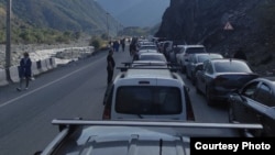 В общем, зацепившись за машину проводника, мы попали в Кармадон. Проводник довез нас до серпантина, который ведет до грузинской дороги, мы с ним попрощались и поехали дальше. Буквально немного объехали, и тут нас остановили какие-то местные ребята на белой "Ниве". Молодой парень спросил, куда мы едем, у самого руки за спиной, и я услышал, как он передергивает затвор. Ночь, пустая дорога, нас встречают ребята с оружием. Завязался какой-то разговор, и в итоге нас спас наш проводник. Он увидел, что нас остановили, почувствовал, видимо, неладное, и отъехал недалеко от нас. Потом уже подошел, они вместе начали разговаривать на местном языке. Долго всё это происходило, иногда на повышенных тонах, но в итоге нас отпустили. Понятно, что люди едут из страны, везут наличку, потому что в Грузии [российские] карты не работают. В общем, нас отпустили — и мы выехали по серпантину на военно-грузинскую дорогу. Мы оказались где-то на середине пробки, это было уже утром 26 сентября.