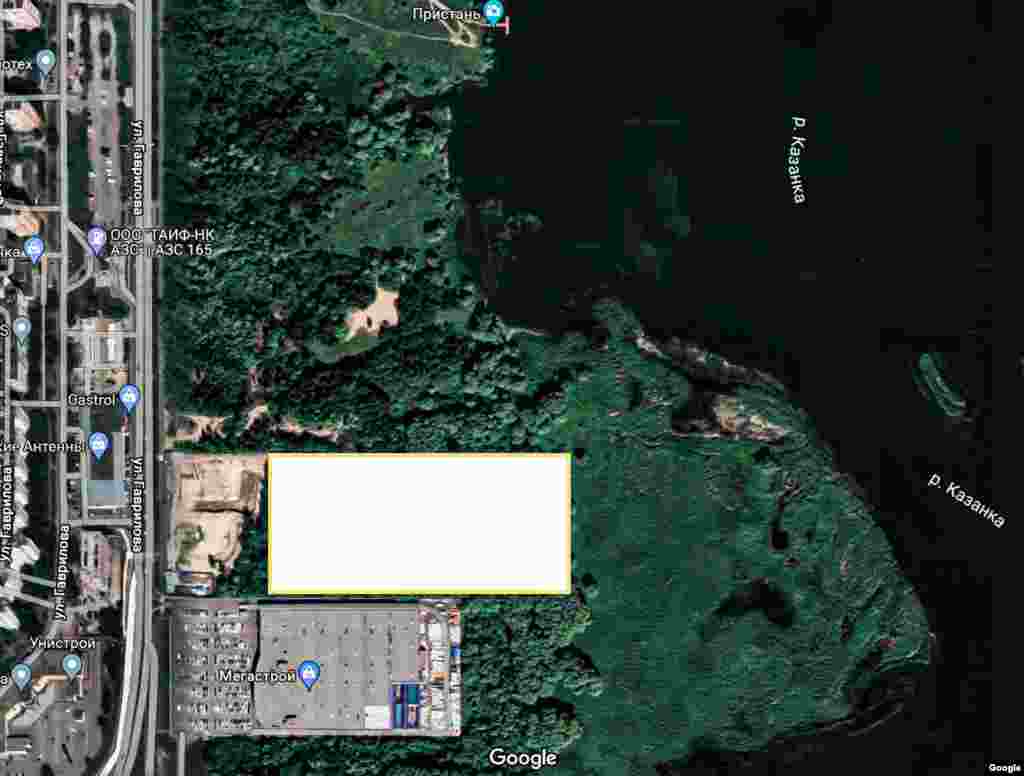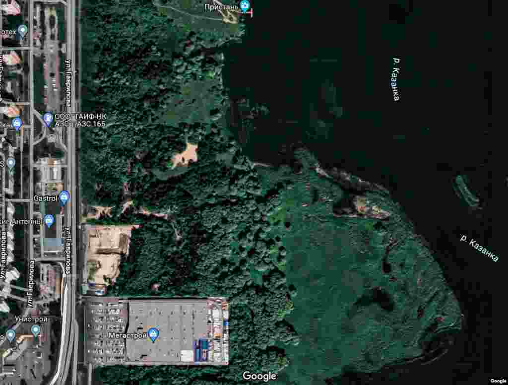 Масштаб вырубки Гавриловской рощи с высоты птичьего полёта. Там, где на втором скрине большой светлый прямоугольник, раньше был густой пойменный лес. Слева от него изначально выделенный под застройку участок, выше — неуничтоженная пока что часть Гавриловской рощи.
