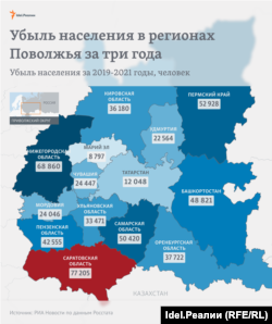 А вот в республиках и областях Поволжья, так же как и в остальных 65 регионах РФ, численность населения уменьшилась.