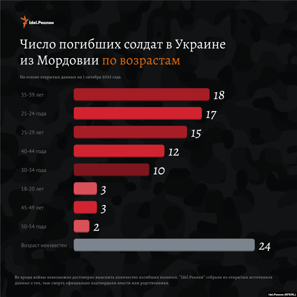 Как минимум 45 уроженцев Мордовии в возрасте до 35 лет признаны погибшими в Украине с начала войны.