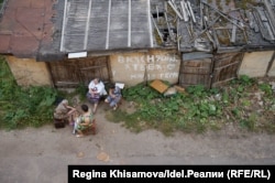Женщины собрались у подъезда, где живут Марасинские. Они наблюдают за тем, как весь день к ним то и дело заходят журналисты с большими телекамерами. Женщины, вытащив табуретки и сломанные офисные стулья из соседнего сарая, следят за их работой. На выходе все подходят к ним: женщины не тушуются и рассказывают про свои квартиры.