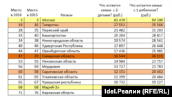 Первый рейтинг отображает благосостояние российских семей в разных регионах страны. В его основе – свободный денежный остаток в семейных бюджетах после покупки самого необходимого с учетом местных цен. В лидерах, ожидаемо – северные и столичные регионы. Здесь у семей с одним ребенком остается от 50 до 100 тыс. сбережений, а с двумя детьми – от 45 до 90 тыс. Поволжские регионы по этим показателям сильно отстают.