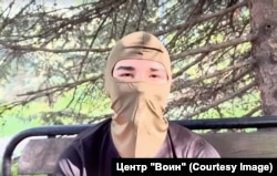 На видеозаписи молодой человек сидит на скамейке в черной футболке и балаклаве. Ему 18 лет, несколько месяцев назад он был обычным подростком, который проходил обучение в центре военно-спортивной подготовки "Воин" в Тюмени. Сейчас он военнослужащий российской армии, находящийся в военном госпитале из-за ранения.