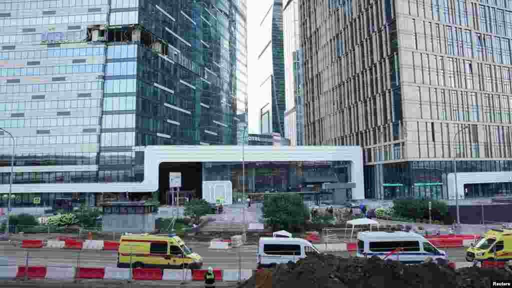 Министерство обороны России заявило, что в район "Москва-сити" прилетели два беспилотника, они были подавлены средствами радиоэлектронной борьбы, а разрушения вызваны их падением после потери управления