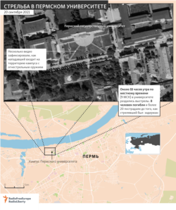 Студент открыл утром в понедельник стрельбу в Пермском государственном университете. По официальным данным Следственного комитета, погибли восемь человек, пострадали 28. У большинства из них огнестрельные ранения. Семь раненых госпитализированы, один из них находится в тяжёлом состоянии.